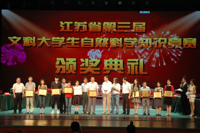 本网讯 6月27日下午,江苏省第三届文科大学生自然科学知识竞赛决赛在南京举行。beat365商学院朱思齐同学喜获佳绩,荣获一等奖,beat365荣获“优秀组织奖”。另外,艺术学院田野等5名同学荣获三等奖,文法学院肖正康等40名同学荣获优秀奖。