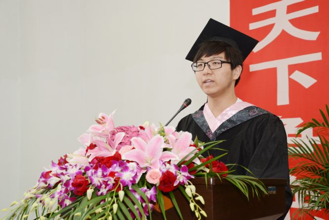 文法学院汉语言文学专业王吉祥同学代表2015届毕业生发言,他满怀激情地分享了自己大学四年的成长和收获,表达了对母校深深的眷恋之情和老师们四年来细心栽培的感激之情,并对学校未来的发展送上美好的祝愿。