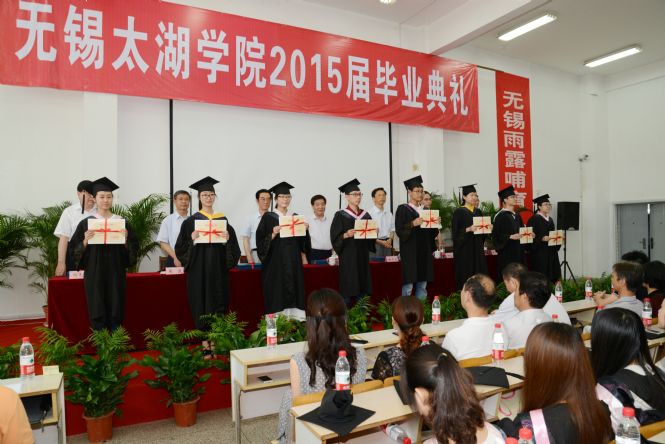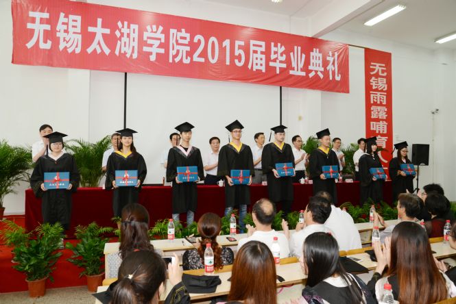 徐从才校长对2015届全体毕业生给予殷切希望,他说,青年是一个人成长成才的黄金时期,大学生思维活跃、精力旺盛、朝气蓬勃,富有创新激情和创新活力,爱因斯坦26岁提出著名的狭义相对论;牛顿24岁创立了微积分,27岁成为教授;马克思29岁时同恩格斯共同发表《共产党宣言》;华罗庚依靠自学数学,25岁发表震惊世界的数论专著。同时,青年杰出人才往往也是引领时代的创业先锋。比尔盖茨年仅20岁创立微软公司;乔布斯21岁创办苹果电脑公司;谢尔盖布林25岁创办谷歌公司。今天中国互联网三巨头BAT(百度、阿里、腾讯)的创始人李彦宏、马云、马化腾初创时,不也是“草根”? “海阔凭鱼跃,天高任鸟飞。”徐校长勉励毕业生们勤于学习,不断进取,大胆创新创业,奋勇争先,坚韧不拔,弘扬太湖精神,争取人生最大的成功。母校是毕业生们坚强的后盾,母校会永远关注毕业生们的成长与成才,欢迎毕业生们常回母校看看,与母校共同分享成功和喜悦。