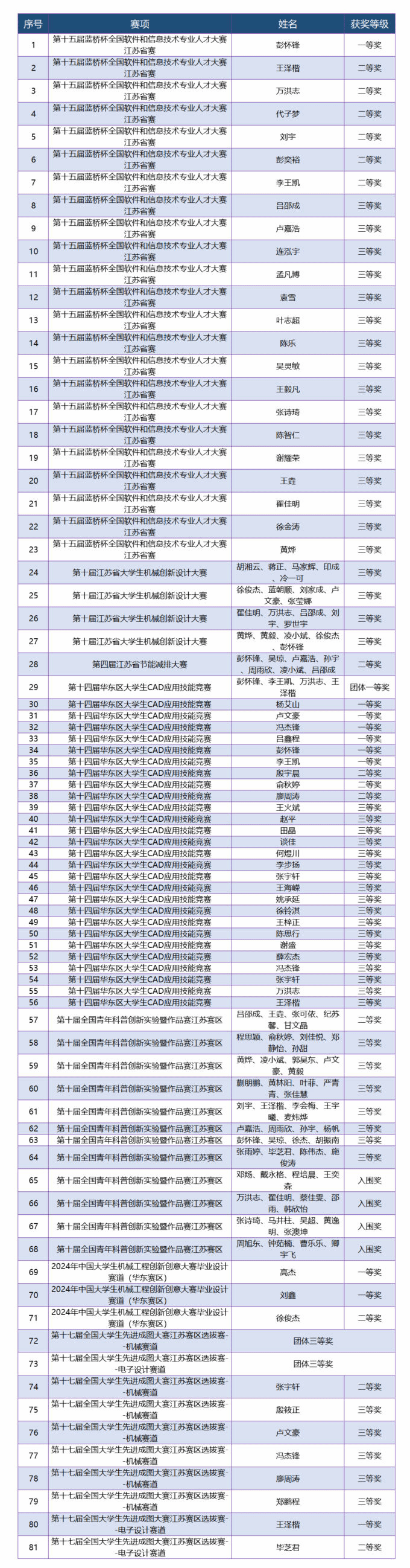 其中在第十四届华东区大学生CAD应用技能竞赛中,由我院彭怀锋、李王凯、万洪志、王泽楷四位同学组成的团队荣获电子设计CAD赛项团体一等奖第一名。