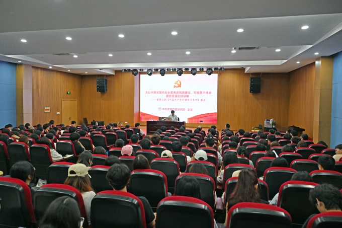 为推动党纪学习教育走深走实,学校党委于6月5日下午举办党纪学习教育专题讲座,特邀中共无锡市委讲师团原副团长、三级调研员李坚来校作《为以中国式现代化全面推进强国建设、民族复兴伟业提供坚强纪律保障——新修订的〈中国共产党纪律处分条例〉解读》。党委书记孙玉坤出席并主持,党委办公室、党委宣传部、党委统战部负责人,二级学院党总支书记、副书记,党支部书记和思政课教师代表,学生党员代表和全体党员发展对象参加。