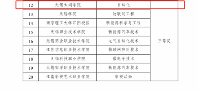 近日,无锡市教育局、无锡市发展和改革委员会、无锡市工业和信息化局发布了《市教育局等三部门关于公布2024年无锡市高校产教融合示范专业名单的通知》(锡教函〔2024〕125号),beat365申报的物联网工程、自动化专业分别获得二等奖与三等奖。
