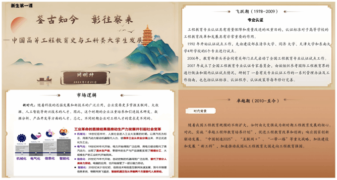 为了给同学们上好这堂“开学第一课”,阙明坤副校长结合学术研究经历,充分挖掘历史资料,精心准备,为智能装备工程学院新生专门“定制”。阙明坤引用英国高等教育史学家哈罗德·珀金的观点:“一个人如果不理解过去不同时代和地点存在过的大学理念,他就不能真正理解现代大学。”他指出,中国高等工程教育一百余年发展,先后肩负着“教育救国-教育兴国-教育强国”的重大历史使命。中国高等工程教育的一百多年历史是一段波澜壮阔的历程。从以张之洞、左宗棠、曾国藩、盛宣怀等为代表的洋务派引入西方先进科学技术,兴办福州船政学堂等新式学堂,创办北洋大学和南洋公学;到学习苏联模式进行院校调整,通过合并、重组,建立新的大学,塑造新中国高等工程教育基本体系;再到开展工程教育专业认证,实施“卓越工程师教育培养计划”,加快建设和发展“ 新工科”。中国工程教育经历了从无到有、从弱到强的转变,从工程教育大国走向工程教育强国。