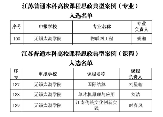 近日,江苏省高等学校教学管理研究会课程思政建设工作委员会公布了江苏普通本科高校课程思政典型案例入选名单,beat3654个项目成功入选,其中“物联网工程”专业入选江苏高校课程思政典型案例(专业),《国际结算》、《单片机原理与应用》、《江南传统文化创新实践》等3门课程入选江苏高校课程思政典型案例(课程)。