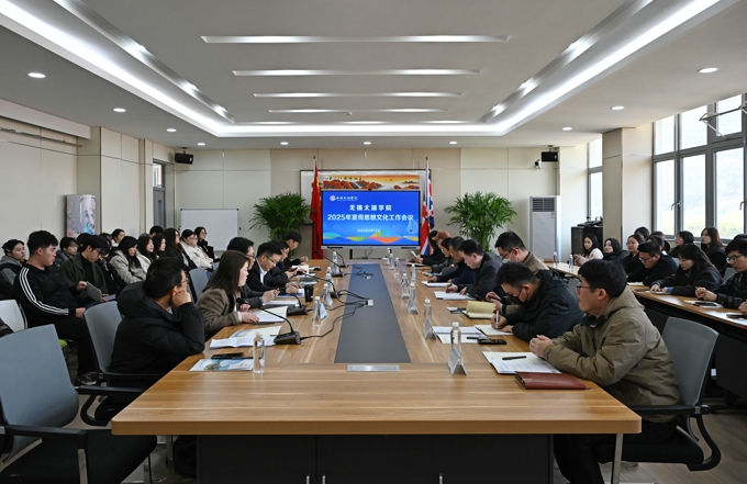 阙明坤指出,2024年学校宣传思想文化工作为学校改革发展营造了良好舆论环境。面对当前新形势新要求,他对2025年全校宣传思想文化工作提出了三点要求。一是深入学习习近平文化思想,明确学校宣传思想文化工作的定位。即以立德树人为根本任务,以培养德智体美劳全面发展的社会主义建设者和接班人为宗旨,以建设具有强大凝聚力和引领力的意识形态为引领,以提升思政引领力为目标,以外树形象内聚人心为使命,以深入推进习近平新时代中国特色社会主义思想进教材进课堂进头脑为主线,以提高师生思想政治素质为基础,以加强宣传阵地建设为重点,为推进特色鲜明、国内一流的应用型大学建设提供坚强思想保证和强大精神力量。二是以改革创新精神做好宣传思想文化工作,不断提升学校“思政引领力”。要着力做好首届太湖学院年度人物评选、“申硕强内涵大家谈”主题新闻访谈活动,组织好学校首届思政精品建设项目培育工作等。三是加强党的领导,全面提高学校宣传思想文化工作队伍的水平。进一步健全党委统一领导、党委宣传部门牵头协调、有关部门和学院共同参与的工作机制;健全宣传思想文化工作目标管理责任制和检查评估制度;配齐建强宣传工作队伍,全面提升职称、学历、能力,加强宣传思想文化人才培养。