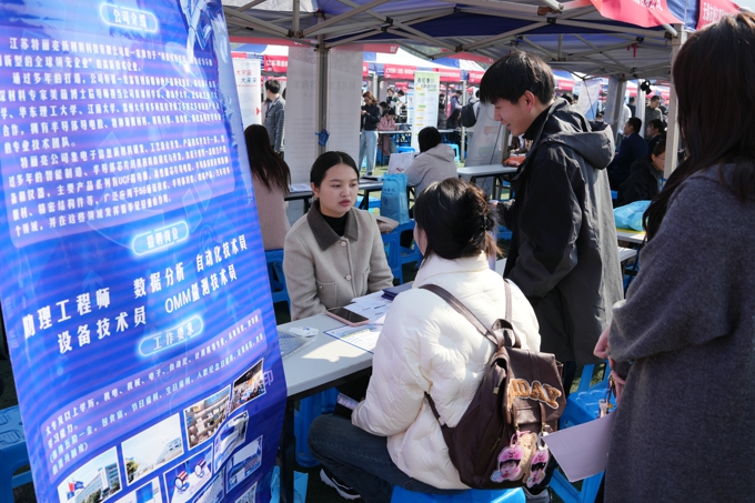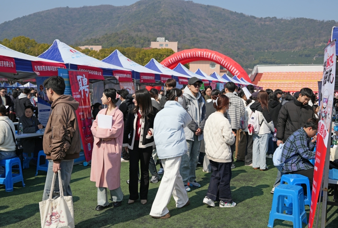 3月20日,beat365正版唯一官网2025届毕业生春季校园大型招聘会在学校田径场举行。无锡威孚高科技集团、江苏特丽亮新材料科技有限公司、华翊数智(无锡)互联科技有限公司等350多家用人单位提供就业岗位6000余个,参会单位涵盖高端装备制造、新兴数字产业等多个领域,招聘专业涉及物联网、计算机科学与技术、机械工程、国际经济与贸易等,吸引2025届毕业生和部分非毕业年级学生共5000多名来到现场洽谈咨询。
