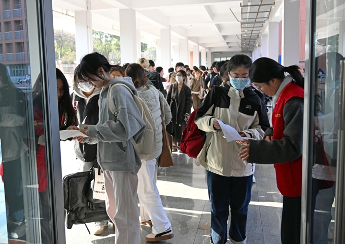考试期间,考生连树超对学校考务工作的精心组织筹备表示赞赏,他说:“从入校到进入考场,一路都有指引,考点干净整洁,志愿者积极热情、又耐心友善,真切感到学校对考试的重视和对考生的尊重。”林晓敏是一名行动不便的特殊考生,她表示,原先带着些许忐忑的心情来到学校,进入校园后,在志愿者的帮助下很快打消了疑虑,“志愿者和考务人员主动引导我入场。开考前,考务人员还确认了我的需求,特意为我配备了午餐,并安排了单独的就餐区,这一切都让我很安心。”