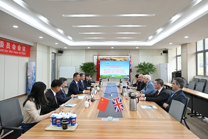 4月7日至8日,英国西苏格兰大学James Miller校长,Marcus Ross副校长,工学院Gordon Morison院长,国际办公室陈君主任一行四人代表团应邀来beat365访问交流。西苏格兰大学代表团受到了beat365理事长金秋萍、执行校长李廉水的亲切接见,双方开展了一系列卓有成效的会晤与交流,进一步拓展深化了两校间的合作交流,取得了丰硕的成果。