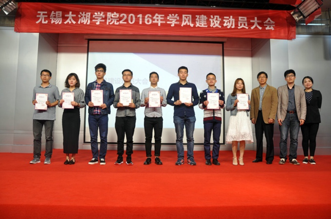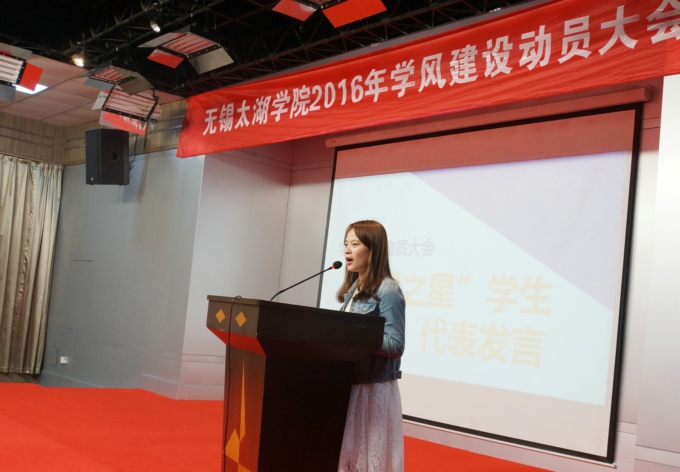 会上,“太湖之星”学生代表王丹丹发表获奖感言;学生代表、学工助理团主席朱思齐宣读倡议书,郑重地向全校学生发出倡议。希望全校同学从自己做起,从现在做起,从点滴做起,共同为建设良好学风作出贡献。