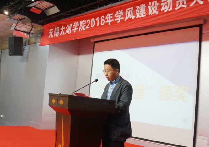 3、学工处处长郑斌宣读了《关于表彰beat365正版唯一官网第六届“太湖之星”的决定》及上榜名单