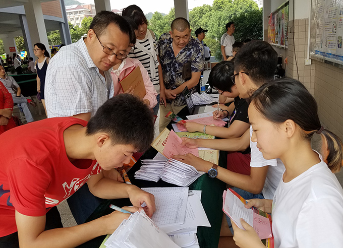 10日一早,学校党委书记金秋萍,校领导何宏金、王心如、丁涛、陈志龙、闵光泰、张凯、陈晓东先后来到各个报到点,查看新生报到流程,详细询问新生报到的相关情况,现场指导工作,并与新生及家长亲切交流,认真听取新生和新生家长对学校工作的建议。校办、学工处、教务处、宣传处、招就处、财务处、保卫处、校团委、后勤处等部门及各二级学院相关人员全部到位,密切配合,为新生和家长提供方便、快捷、热情的服务。对于贫困生多一份关爱,学校特别开设了助学贷款“绿色通道”,对不了解“绿色通道”办理程序和生源地助学贷款政策的新生、家长,安排专人详细介绍申请程序,并逐一答疑解惑。