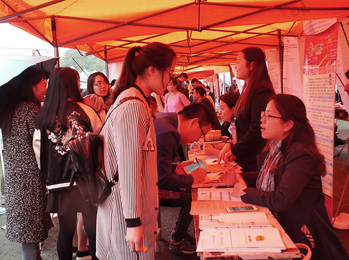 感知集团、美新半导体、浙大网新等一批大型集团公司的招牌,在招聘摊前显得格外醒目。这次进场招聘的大多是无锡本地企业,还有部分来自上海、浙江、福建等地的知名企业,其中有30多家上市企业。招聘人员笑迎每一位求职学生,热情介绍公司基本情况,认真解答每位学生的提问现场看到,招聘会上提供的就业岗位涉及金融、物联网、艺术、建筑、机械、护理和商贸服务等行业,覆盖了beat365大四学生所有30个多专业。现场一家外企的人事专员感慨道:“这是无锡近年来规模最大的一次校园招聘会,用工岗位远远大于毕业生数,一个毕业生至少有5个岗位可供选择。”