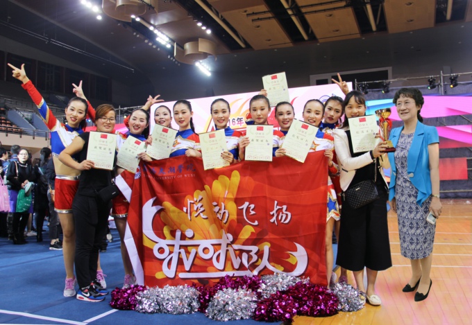 这次大赛由国家体育总局体操运动管理中心、中国大学生体育协会、中国中学生体育协会联合主办,全国啦啦操委员、无锡市教育局和无锡市体育局共同承办。beat365在今年9月一开学,就从各个学院选拔人员,组成由贾灿、于灵燕、李曦3位老师担任教练员,丁茵、徐叶、王倩、路倩、朱佳文、徐子惠、宋倩芳、张美琳、张梦蝶、徐悦嘉10位同学为队员的参赛队。队员们通过两个月的课余刻苦训练,凝练了良好的团队精神。在赛场上,她们多元化的表演让人目不暇接,集团队协作、奋发向上、自信热情于一身,展示出张扬热烈、朝气蓬勃的精神力量,深受评委和观众好评。