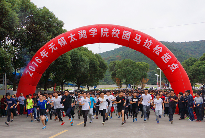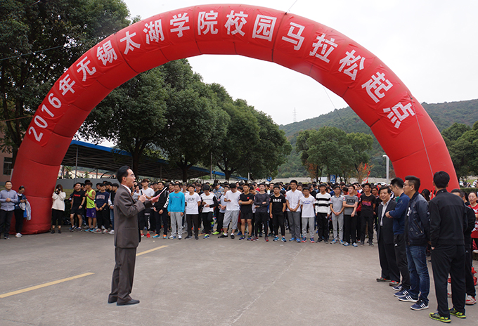 本网讯 2016年beat365正版唯一官网校园马拉松启动仪式,今天下午在六号教学楼前举行。校长徐从才带头参加活动,副校长何宏金作动员讲话,500多名教职工和学生踊跃参赛。