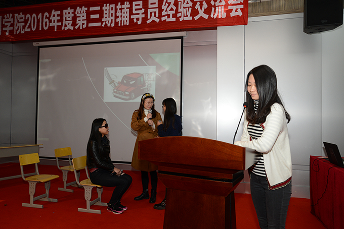 会议首先为荣获2015-2016学年省、市先进班集体的班级颁发了奖状。接着,来自各学院的6位辅导员现场为大家展示主题班会。商学院蒋银屏老师的主题班会,围绕毕业生就业这一热点话题展开,指出大学生在校期间应正确自我定位、树立明确目标,为日后就业奠定坚实基础。会计学院袁婷老师的班会以珍惜时间为主题,倡导大家在日常生活中要合理利用时间。土木工程学院钱紫云老师针对当下的“低头族”现象,在班会中通过一系列实例告诉同学们要学会创建和谐融洽的人际关系,拒做“低头族”。外国语学院张晶老师以“行好万里路”为主题开展班会,倡导大家在旅行过程中要做到文明出行、安全出行。艺术学院化开斌老师在主题班会开展“团队建设”大讨论,强调在团队建设过程中要有明确的目标和分工。物联网工程学院王奇琦老师以校园安全为主线开展主题班会,通过情景短剧的形式告诉大家要提高安全意识,防患于未然 。