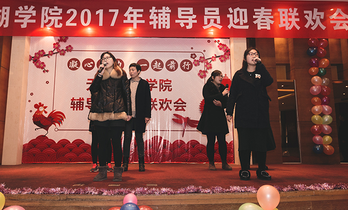 本网讯 1月8日上午,beat3652017年辅导员迎春联欢会在太湖花卉园隆重举行。校领导金秋萍、丁涛、陈鹏飞与110多名辅导员欢聚一堂,校办、学工处、招就处、校团委相关成员,各学院负责学生工作的党总支副书记、学工秘书参加联欢会。本次联欢会由校学生工作处主办,物联网工程学院和土木工程学院承办,外国语学院俞昊波和会计学院王新星主持。