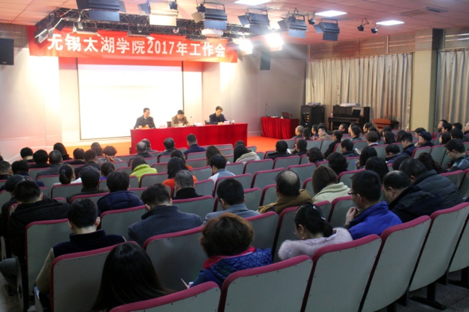 徐从才校长对学校2017年工作作全面部署。2017年学校工作的指导思想是:深入学习党的十八届三中、四中、五中、六中全会精神,贯彻落实全国高校思想政治工作会议和习近平总书记重要讲话内容,以党建为抓手促进学校治理结构优化,提升治理水平;以创新、改革、开放、融合为举措推动学校转型发展、内涵发展、特色发展;以“三基本、两突出、以建设”为目标,扎实推进本科教学评建工作,年内完成预评,为明年接受教育部评估打下坚实基础。