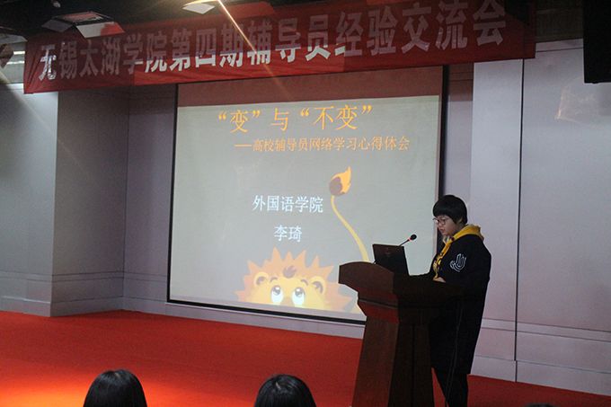 会上,首先由五名老师结合上一年度的beat365正版唯一官网辅导员网络专题培训,分享学习心得。外国语学院李琦老师认为,在日常工作中,辅导员要用爱心感染学生,用耐心转变学生,用细心引导学生,用真心教育学生。机电工程学院的明耀堃老师提出,预防突发事件要做到强化内部管理和危机意识教育,在重视法制教育的同时,做好舆论引导特别是网络舆论的引导。商学院蒋银屏老师提出,辅导员要用爱与尊重开启学生的心灵,只有深入学生,才能对其进行潜式引导教育,只有了解学生,才会更加透彻地理解辅导员这一职业。商学院唐玮老师则认为,辅导员要通过培养“舆论领袖”来引导舆论走向,更有利于维持高校网络舆论环境的开放与和谐。物联网工程学院马彪老师提出,辅导员常规工作是学生成长成才的基本保障,用心、用情、用爱,是辅导员工作的真善美,自我不断提升是辅导员工作的升华所在。