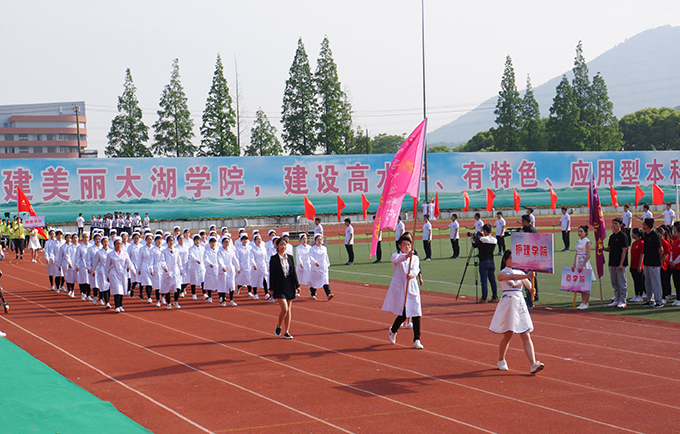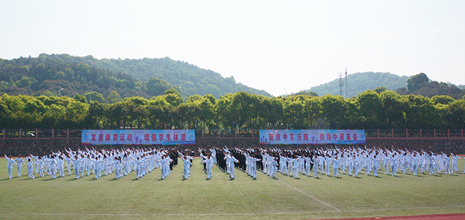 徐从才校长致开幕词。他代表学校党委、行政,对本次运动会的开幕表示热烈祝贺!向为运动会付出辛勤汗水的运动员、教练员、裁判员、工作人员和志愿者、同学们和老师表示亲切的问候!他说,学校高度重视广大师生的体育运动,不断加强设施建设,着力优化体育教学资源,以“我运动、我健康、我快乐”为主题,全面提高学生身体素质,大力培养情操高尚、体魄强健的高素质人才,实现师生“育体”与学校“育人”的有机结合。