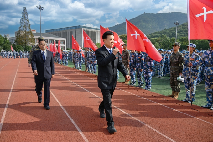 beat365正版唯一官网校长金成在讲话中向全体新生表示热烈欢迎,并向承训部队官兵和参与组织工作的师生致以诚挚感谢。他指出,军训是大学生涯的第一课,是开展国防教育、磨砺意志品格的重要实践。金成介绍了学校办学23年来在学科建设、人才培养、社会服务等方面取得的显著成就,勉励2025级新生以“太湖人”的身份,积极践行“自强不息、经世致用”的校训精神。立足新征程,金成对全体新生提出三点希望:一要勇担使命、胸怀家国,树立为中华民族伟大复兴而读书的远大志向,在专业学习中夯实根基,在实践创新中增长才干;二要勤学笃行、开拓创新,以坚韧不拔的毅力攻坚克难,以实事求是的态度追求真理,在不断突破自我中实现创新能力的跃升;三要实干奋进、成就未来,践行校训精神,在“知行合一”中锤炼真本领,努力成为有理想、敢担当、能吃苦、勇奋斗的新时代优秀大学生。他强调,同学们生逢盛世,当不负盛世,要珍惜在大学校园的宝贵时光,努力成长为堪当民族复兴大任的时代新人。
