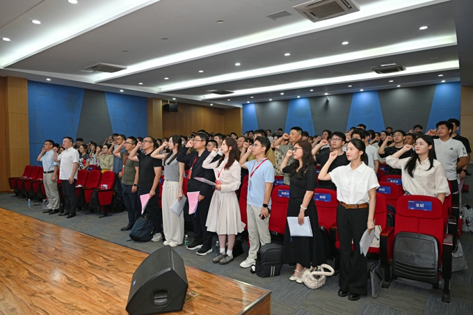 今年适逢中国人民抗日战争暨世界反法西斯战争胜利80周年,开班仪式后,人事处特别组织新教师集体观看九三阅兵盛况。雄壮的阅兵场面、铿锵的战士步伐,让在场教师无不动容。这一安排旨在以此次阅兵为重要教育契机,将伟大抗战精神有效融入育人全过程,引导青年教师将历史记忆转化为奋进力量,让伟大抗战精神在新时代绽放更加璀璨的光芒。