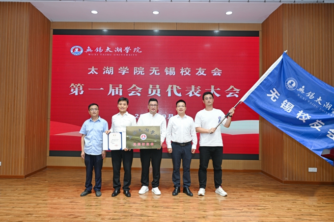会上校友会办公室负责人宣读了《关于同意成立太湖学院无锡校友会的批复》,会员代表大会审议通过了《太湖学院无锡校友会章程》《太湖学院无锡校友会理事会成员管理办法》《太湖学院无锡校友会会费管理办法》等。校友会理事会选举产生了学校校友会第一届理事会会长、副会长、秘书长、副秘书长。杨东华同志当选为学校无锡校友会会长,金明、钮理洲、盛鑫、王安之、许杰、杨华、詹启江、赵怡婷、赵屹雄当选为副会长;詹启江同志当选为秘书长,高静雯、姜燕、陆燚、裴友、徐朵、詹雨欣、赵文祥、赵飞龙当选为副秘书长。副校长阙明坤、校友会办公室负责人向第一届理事会会长颁发聘书,向会员代表授牌、授旗。