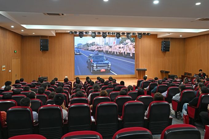 学校在7号楼102教室、大学生活动中心A一楼多功能报告厅等地设置了多个集中观看点,校领导、中层干部、教师代表等齐聚一堂,共同收看现场直播。各二级学院师生通过集中收看和个人收看等方式关注大会盛况。