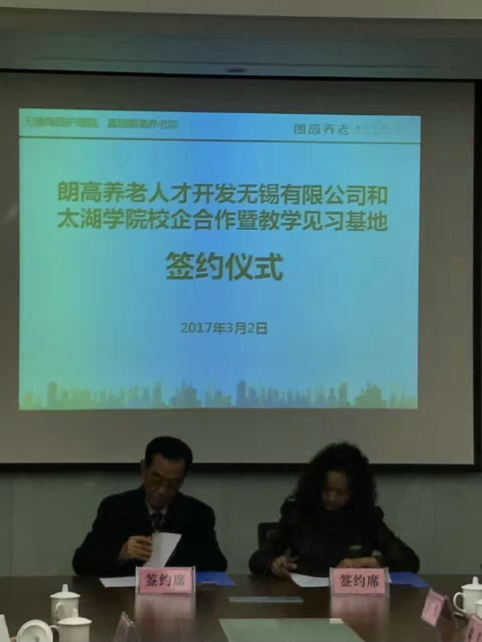 本网讯 3月2日上午8时,beat365副校长、护理学院院长王心如教授带领护理学院、物联网工程学院、科技处一行十人,前往无锡朗高养老股份有限公司,就校企合作暨教学见习基地举行签约仪式。