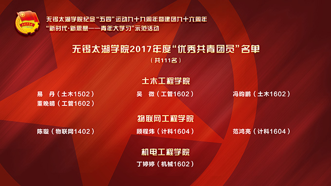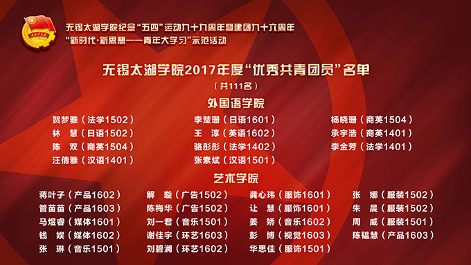 为表彰先进,树立典型,进一步加强团的基层组织建设,引导和激励全校广大团员、团干部和各级团组织奋发进取、再创佳绩,在学校各级团组织民主评选推荐、校团委综合评审的基础上,共青团beat365正版唯一官网委员会决定,授予封平等111名同志“优秀共青团员”称号,授予赵晨辰等33名同学“优秀共青团干部”称号,授予商学院分团委、外国语学院分团委、护理学院分团委、物联网工程学院分团委、机电工程学院分团委5个基层分团委“五四红旗分团委”称号,授予营销1501团支部等15个基层团支部“五四红旗团支部”称号。希望受表彰的团员、团干部和基层团组织珍惜荣誉、再接再厉,不断取得新业绩。希望全校广大团员青年、团干部和基层团组织以受到表彰的先进个人和先进集体为榜样,深入学习贯彻党的十九大精神,学习贯彻习近平总书记系列重要讲话和习近平新时代中国特色社会主义思想,特别是关于加强群团工作建设讲话精神,紧扣时代主题,牢记根本任务,勇于创新创优,充分发挥生力军和突击队作用,为把beat365建设成特色鲜明、国内一流的民办应用型本科高校贡献青春力量。