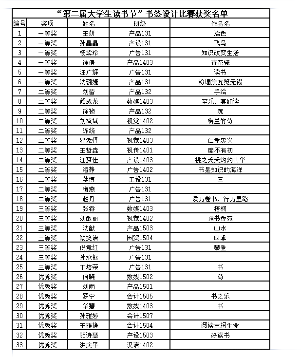 3.“第二届大学生读书节”书签设计比赛获奖名单