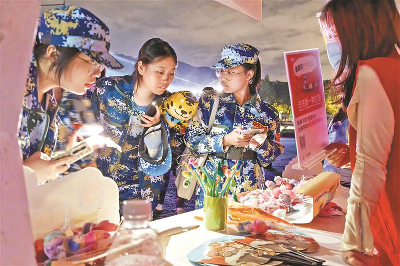 ▲反诈集市人气满满,各式各样的警营文创让同学们眼花缭乱。(刘译允 摄)