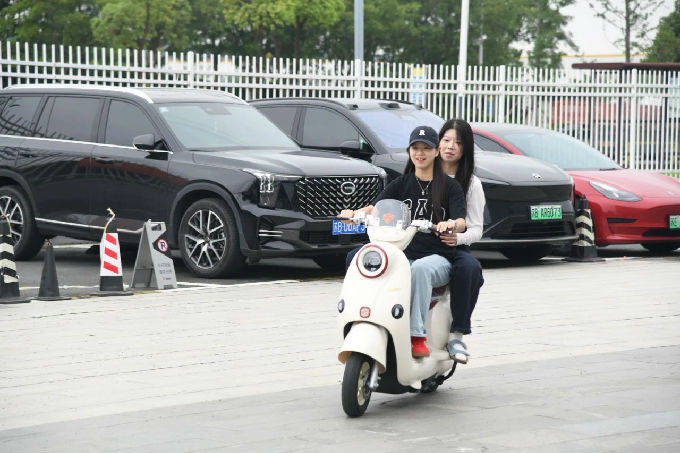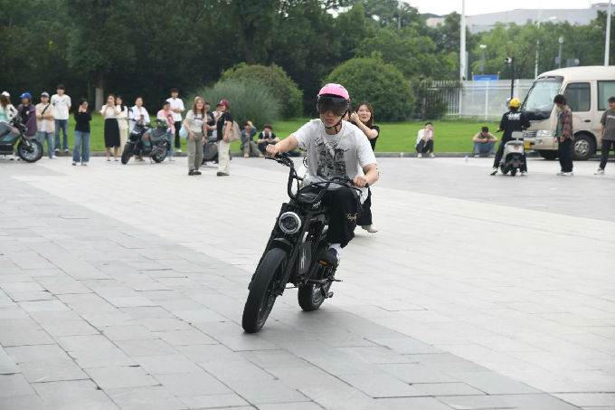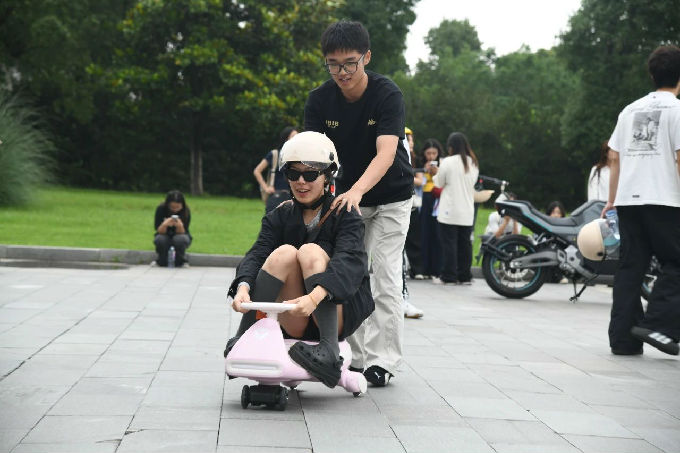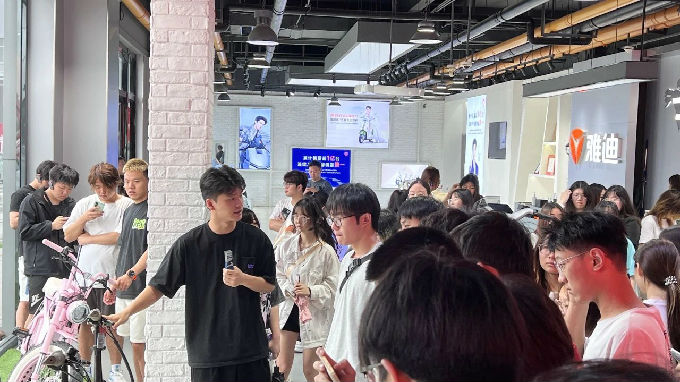 随后,我们在试骑区进行了产品体验环节。我们亲身试骑了雅迪最新发布的电动车型,感受了车辆的操控性能、智能功能以及舒适度。许多学生表示,通过试骑,他们对电动车的使用场景和用户需求有了更深入的理解。