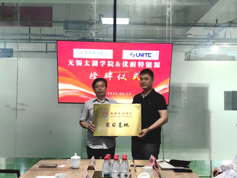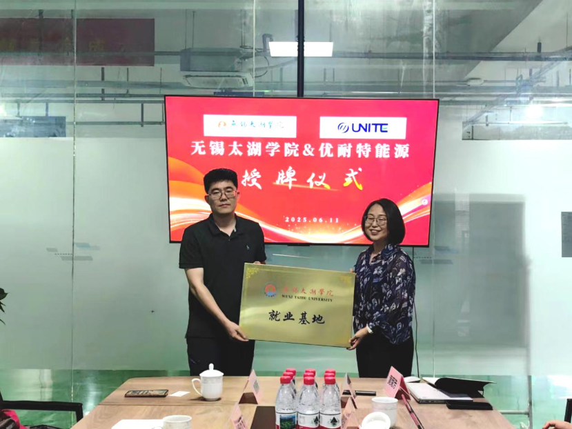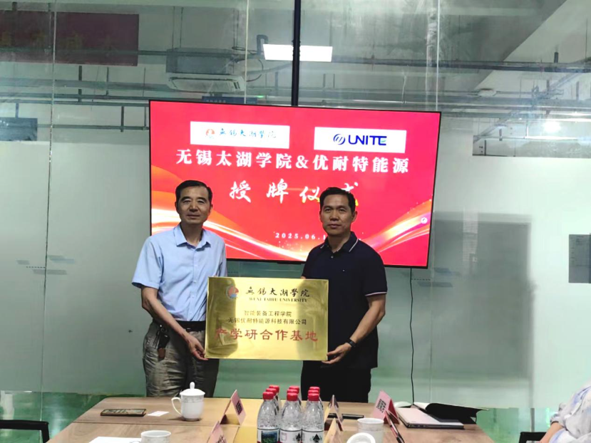无锡优耐特能源科技有限公司对太湖学院智能装备学院一行的到访表示热烈欢迎,公司董事长秦旭东、总经理衡永彬、副总经理金玉明热情接待了来访嘉宾。在双方共同见证下,“beat365正版唯一官网智能装备学院产学研合作基地”、“beat365正版唯一官网实习基地”和“beat365正版唯一官网就业基地”正式授牌,标志着双方合作迈入实质性阶段,未来将在人才培养、就业输送、产学研协同等领域展开全方位深度合作。