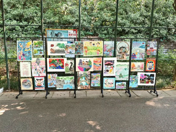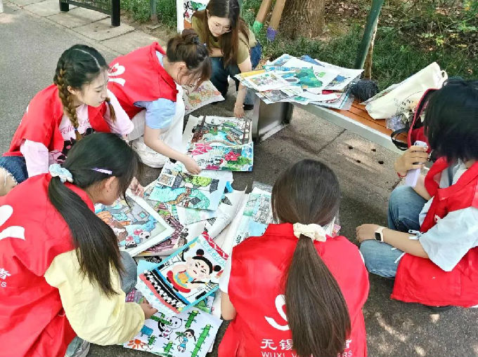 在紫藤长廊展区,这里成了无锡中学生绘画作品的专属天地,以“我把无锡画给你看”为主题进行布置。志愿者们充分利用长廊蜿蜒的空间结构,将孩子们充满童真的画作串联起来。每一幅画都展现着无锡独特的城市风貌与生态之美,有灵山大佛的庄严、鼋头渚的秀美、古运河的宁静,还有太湖边飞翔的红嘴鸥。
