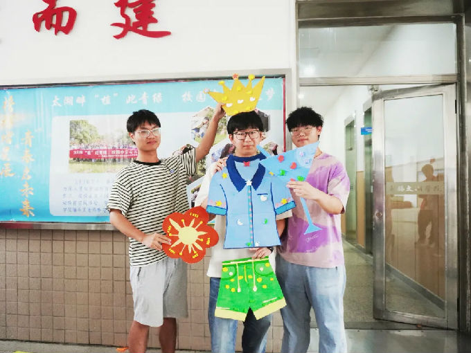 YI行志愿者提前收集快递纸箱裁剪成1:1大小并利用水粉颜料、轻黏土等绘画工具,把平平无奇的纸箱子染的五彩斑斓,制作成富有趣味性和环保性的手持版,在活动现场引来众多同学打卡拍照,传递出五彩的环保信号,在同学心中深深埋下环保的种子。