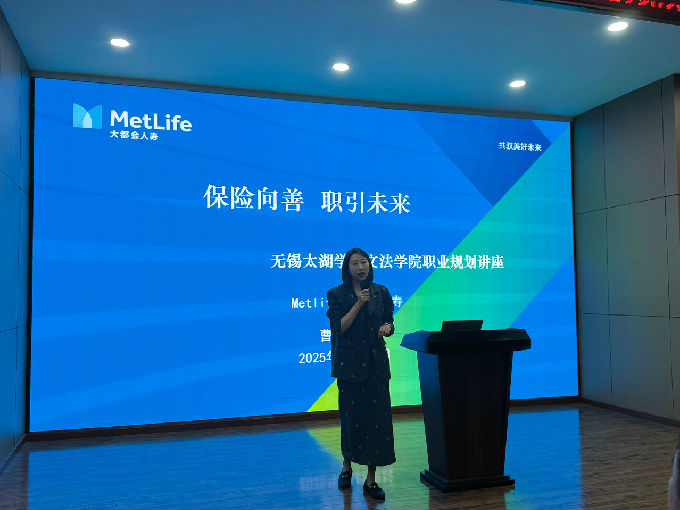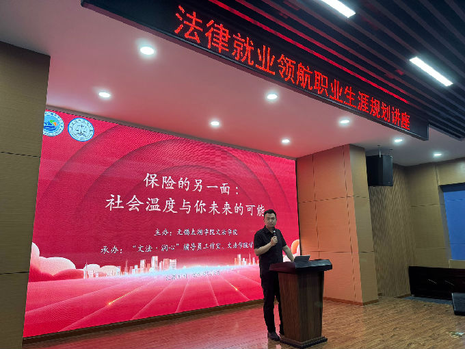 在主题分享环节,主讲嘉宾Metlife大都会人寿无锡事业合伙人曹凤飞从三个维度展开深入讲解:首先,系统分析了当前法律行业的就业形势与发展趋势,指出随着法治建设的深入推进,法律服务的专业化、细分化特征日益明显;其次,详细解读了法官、检察官、律师、企业法务等不同职业路径的发展前景与能力要求;最后,重点分享了提升就业竞争力的具体策略,包括专业证书考取、实习实践安排以及综合能力培养等方面。