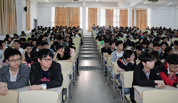 强老先生神采奕奕地向机电学院、物联网工程学院和土木工程学院的约500名工科大学生讲述了自己由一个普通农民如何转变成为优秀企业家的故事。他的3次创业经历,犹如华丽转身,把事业做大做强;他矢志发明创造,成绩斐然;他用诙谐的言语向同学们传达了创新创业的理念,他的成功诠释了知识改变命运。