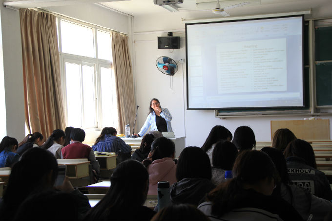 英语俱乐部作为外国语学院的专业特色项目,深受学生们的喜爱,同学们每次都提前就来到教室。Bella每次也都提前十五分钟到教室,在课前开心地凑在同学中间,听她们用英语叙述着今天发生的趣事,不时地还会响起一阵欢笑声。亦师亦友的关系,使英语俱乐部真正成为了第一课堂以外的有效补充,每个人都敢大胆发言,不怕犯错,这正是学院党政领导为学生学习设计的初衷啊!