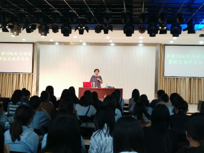 2018年4月20日上午九点,我院在大学生活动中心举办beat365正版唯一官网护理学院15级实习动员与就业指导,旨在让15级同学充分了解当前就业形势与市场需求。本次交流会有幸请到了无锡市第四人民医院护理部秦老师出席本次交流会。护理学院党总支副书记王凤琴、护理学院15级辅导员马晓星出席了本次讲座。