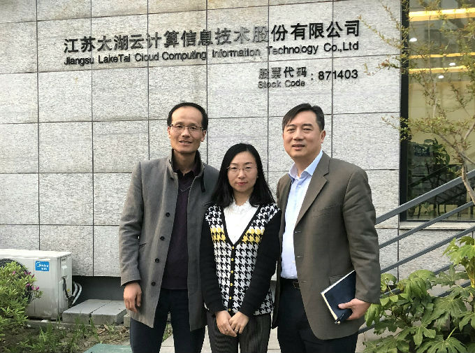 校企合作是实现应用型人才培养的有效途径,为进一步开拓合作企业,2018年4月9日,物联网工程学院副院长李莎与电子工程系高级工程师刘剑滨老师前去江苏太湖云计算信息技术股份有限公司考察,搭建合作桥梁。