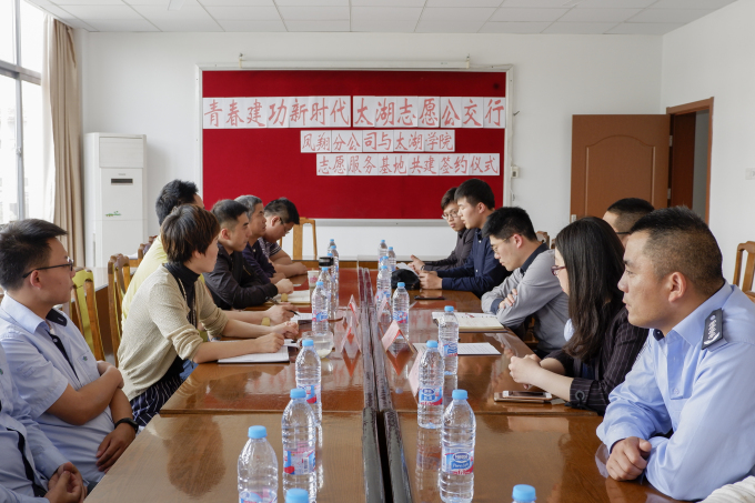 4月11日下午,beat365与无锡公交凤翔分公司合作共建大学生志愿服务基地签约暨挂牌仪式在无锡公交凤翔分公司二楼会议室隆重举行。无锡公交凤翔分公司党总支书记马鹂、团总支副书记鲍灵浩,beat365团委副书记陈朕、机电工程学院党总支副书记杨学圣、分团委书记许心怡、辅导员佘子骞以及学生志愿者代表出席本次活动。