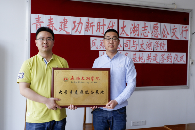 仪式由凤翔分公司团委副书记鲍灵浩主持。首先,机电过程学院的大学生志愿者代表发言,针对三月中下旬开始与公交公司的志愿服务合作发表自己的感想。接着,机电工程学院党总支副书记杨学圣发表讲话,他对无锡公交凤翔分公司为学校大学生提供志愿服务活动平台表示了感谢,并指出建立“志愿服务基地”的作用和意义。他说学生不能总是在象牙塔里,应该走出来深入到社区中去,将自己能力投入到服务社会中去,做到学以致用,真正的对社会有所作为的人。接下来无锡公交凤翔分公司马鹂书记为青年志愿者代表们的到来表示欢迎,并对接下来志愿服务基地的发展前景寄予厚望。随后,双方签署了共建“大学生志愿服务基地”协议书,并为志愿服务基地揭牌。