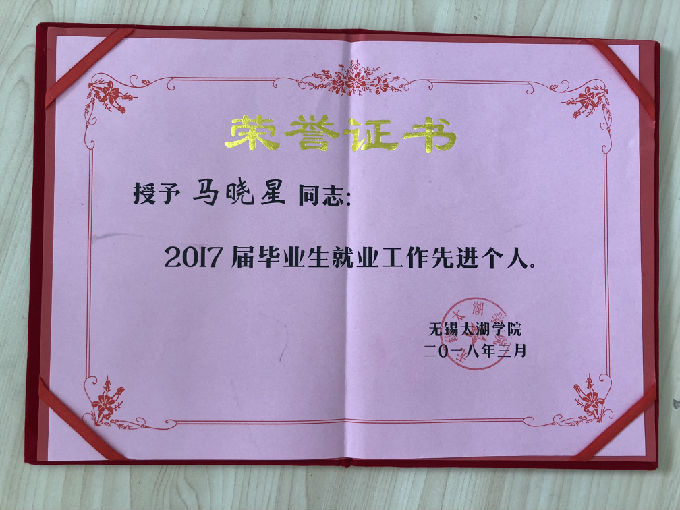 马晓星老师也荣获2017届毕业生就业工作先进个人。