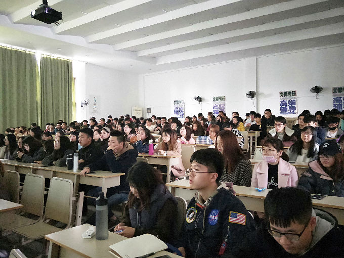 现场近200名学生认真听课