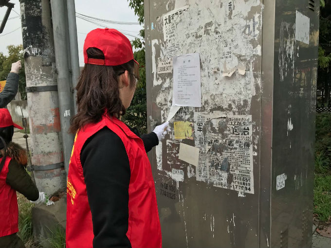 协议签署完后,外国语学院学生会“绿色长城志愿服务团队”和英语1702团支部“太湖好人志愿服务队”便充分履行协议精神,当即便由朱书记带领来到社区下属的李巷,进行环保志愿服务活动。在活动期间,同学们踏实肯干,对于隐藏在乡间泥土中的塑料纸片、烟头等毫不忌讳,毫无怨言,充分体现了我们当代大学生的做志愿的决心与责任感;几名同学分工合作,把顽强的小广告连根拔起,在合作中完成任务,在合作中共同进步,在合作中收获青春。