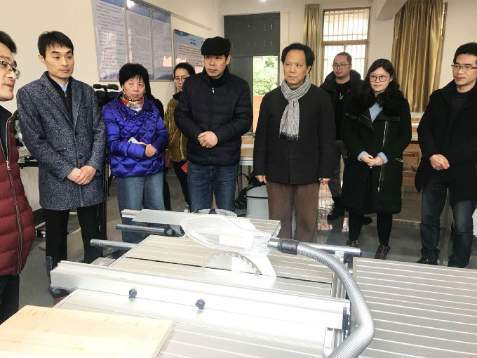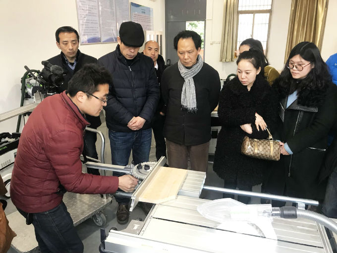 三月七日下午家具家居实训室现场培训教学活动如期举行,家具家居实训室采用的是德国费斯托专业木工设备,主要承担设计课程中家具设计与制作。课程培训由德国费斯托木工设备专业人员负责,按照木工设备加工步骤进行讲解,首先是木工平刨机,主要把木材刨平、刨直;然后是台剧,负责对较大木材进行开料;其次是切割机,是对木材的进一步细加工。在此基础上又对铣机、台钻、木工车、砂带机等设备进行了详细的介绍。老师们通过认真听讲和实践操作,从一开始的担心害怕到后来的主动操作,逐步掌握了各种设备的性能和安全规范,达到了预期的培训效果,在学习与交流的过程中教师与培训人员建立了友好的关系。在学院教师的强烈要求下,培训人员现场承诺再增加一次更加专业精细化的培训,通过使用所有设备加工一件完整坐具,让老师们能更直观地感受产品生产过程全流程,更好地为实践教学服务。