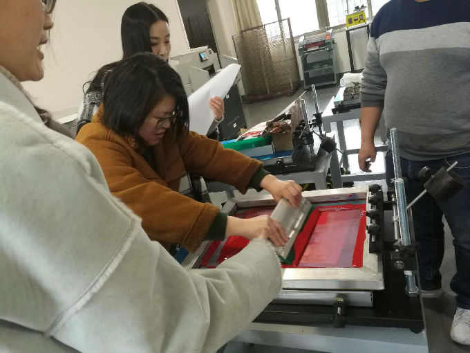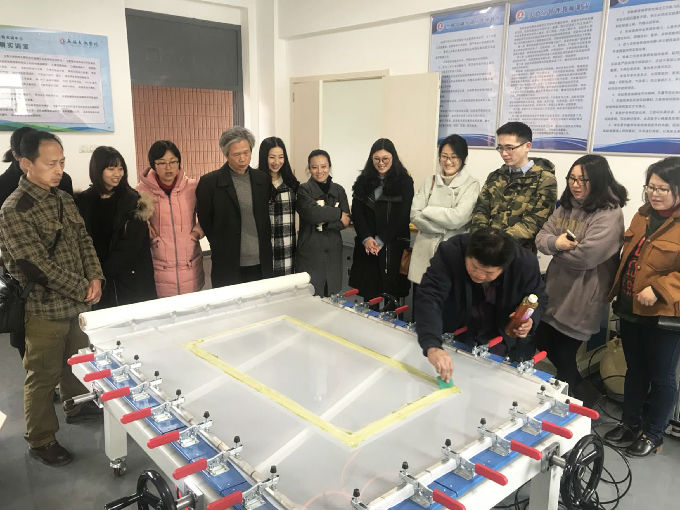 三月六日下午艺术学院丝网印刷实训室教师培训工作圆满完成。丝网印刷实训室设备方浙江涛兴丝印设备有限公司的两位资深技师向老师们详细介绍和演示了设备的使用程序和规范,视觉传达设计系所有教师、服饰设计系部分实训课程相关教师、实训室所有实验员参加了本次培训。老师们培训学习非常认真,积极与设备方技术老师提问互动,并且通过动手实践充分掌握设备的使用方法,为指导学生正确使用设备、更好地完成实践教学环节打下了坚实基础,本次培训达到了预期的效果。