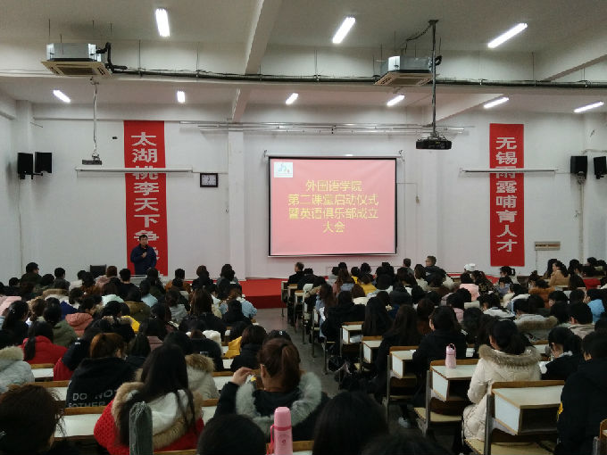 还没到开始时间,教室里已经座无虚席,看来大家对于第二课堂的开展和英语俱乐部的成立兴趣都非常高昂。