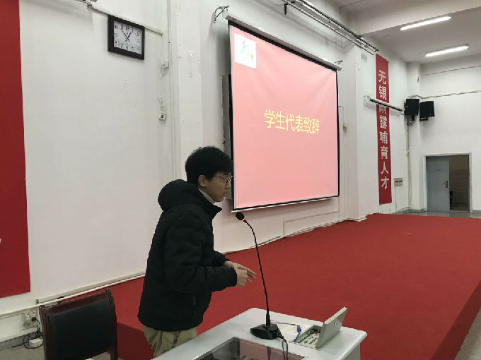 最后是学生代表薛天然同学上台发言,作为上届外国语学院英语演讲比赛冠军,他从容不迫地介绍分享了自己的学习经验,激励了一众同学们学习的热情。加入第二课堂英语俱乐部刻不容缓,也许下一个演讲冠军就是你。