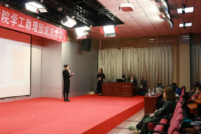 外国语学院学工助理团主席吴豆豆对助理团内部结构向大家进行了一番介绍。让同学们对学工助理团有大致的了解。